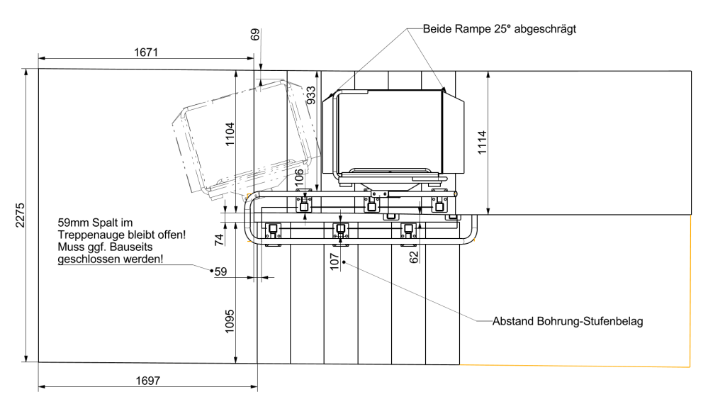 Treppenschrägaufzüge und Plattformaufzüge mit geneigter Fahrbahn nach EN81-40 sind zum Transport von Personen mit Behinderungen im Wohnungsbau prinzipiell einsetzbar. Wegen deren Gefährdungspotentiale und Besonderheiten im Betrieb ist ein Einsatz im öffentlich zugänglichen Bereich stark eingeschränkt und nicht zu empfehlen. Die Nutzbarkeit der Treppe als notwendiger Rettungsweg und ihre Verkehrssicherheit müssen in jedem Fall gewährleistet bleiben.